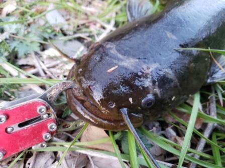 運良くフッキングも決まりバシャバシャと暴れるナマズを慎重に寄せて抜き揚げ