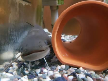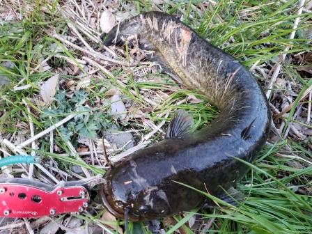 意外に大きめでしたが体に傷が多い黒いナマズ