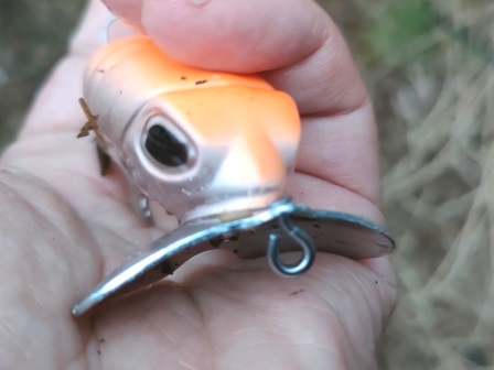 ナマズとルアーがラインが切れたように地面に落ちた。