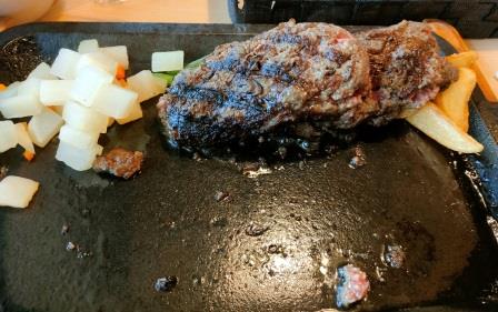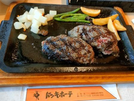 ドンキホーテの300gの俵ジャンボハンバーグは不思議と軽く食べれてしまい、ご飯が1回無料でおかわりできるから2杯食べましたが、げんこつハンバーグにご飯1杯の方が満腹感がありました。これは肉質によるものかな?