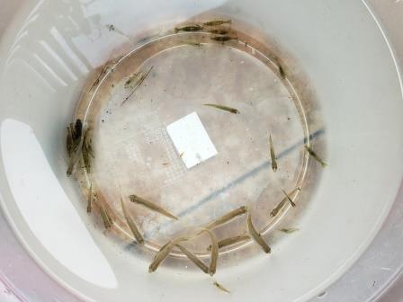 網で足元のエビ等を掬って帰ります。椅子を忘れたので足が痛くなっちゃいました。