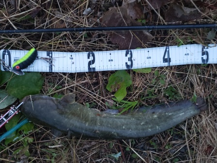 しばらくコイ以外無反応で探っていると、落ちパクで小さいナマズがヒットしたがすぐにフックアウト。