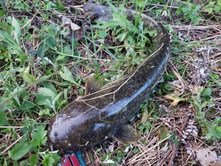 ただ赤身は苦手らしく、カツオの身は食うけど吐きます。最近のお気に入りはワカナゴの切り身で、これは食っても吐かずに消化しているようです。凍結保存してありますが、また釣ってこないとあかん。食っても大して旨くないのでナマズの餌用に最適です♪