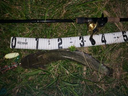 時間がないため一番信頼しているスミス キャタピー クリッカー (ナマズ専用ルアー)をセットしてナマズを探します。