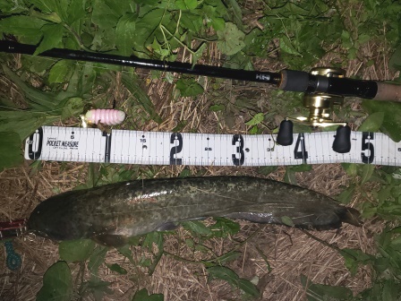 今使っているセルヴァ(SVC-66M/CAT)は80%OFFで買った激安ロッドだけど、やはり専用ロッドは使いやすいわ。グラスロッドなので重たいナマズも抜き揚げ余裕です♪