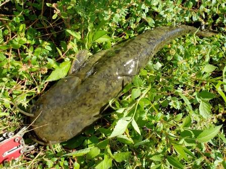 抜き揚げたナマズはまあまあのサイズ