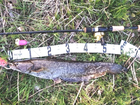 ルアーはジタバグよりナマズに向いているスミス キャタピー (ナマズ専用ルアー)をチョイス。