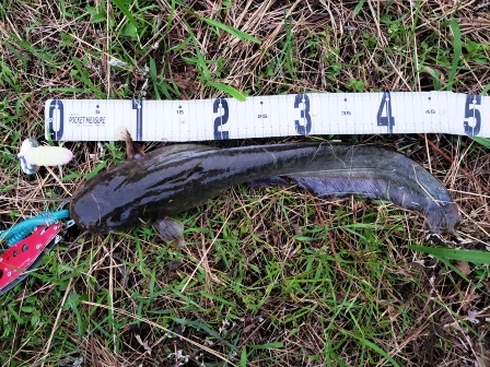 お!ナマズが見えた!少し先へキャタピーを落として近づけたら逃げましたw