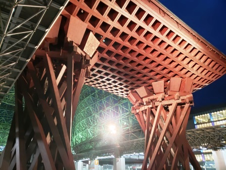とりあえず夕方には風が弱くなり、鼓門を見てみます。なかなか美しい。