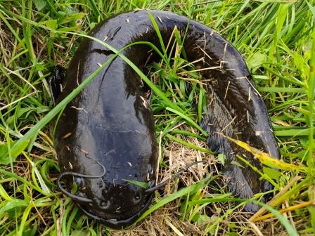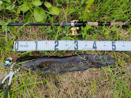 大きくはないけど元気な黒いナマズでした。52センチ