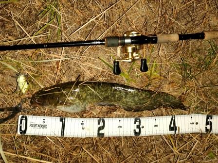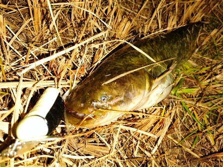 夜光チューンを施したスミス キャタピー クリッカー (ナマズ専用ルアー)をセットしてキャスト~