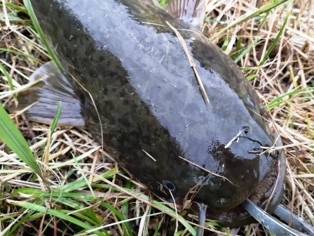 めっちゃ引くナマズを寄せて抜き揚げ