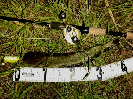 ここも濁りがきつく厳しいかもしれないけど、かなり暗いので夜光チューンした6月1日は店内商品ポイント10倍★スミス キャタピー クリッカー (ナマズ専用ルアー)に交換して探っていきます。