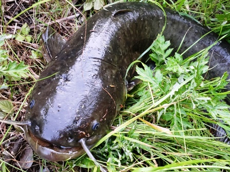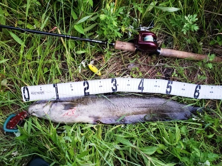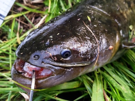 激しいファイトでナマズってこんなに引いたかなと思いながら抜き揚げる。