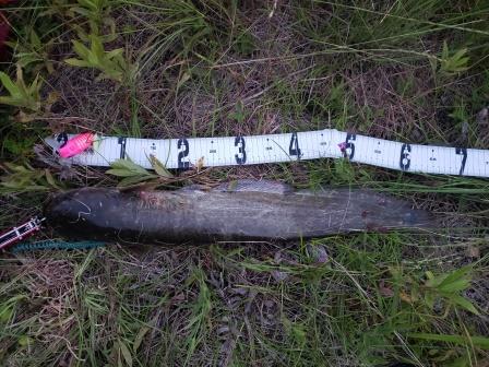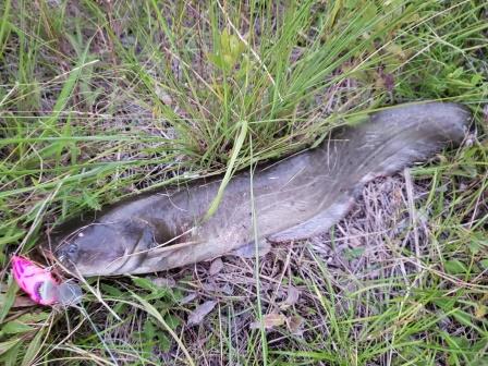 ナマズにしては大きな捕食音で一気に横走り。TD-Zのドラグがユルユルなので苦労しながら止めて寄せるが、アメナマの様によく引く。
