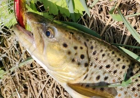 その後も無反応が続き、帰路でラパラを流していると、すぐ横でガバッ!と出やがったが、ルアーを食っておらずそれっきり。