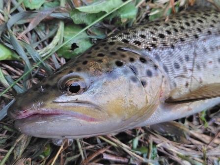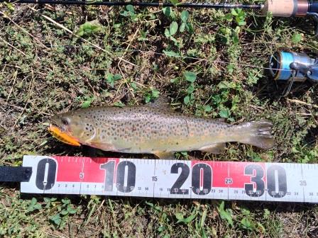 慎重にやり取りして先ほどより大きめのブラウンが釣れました