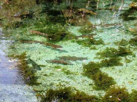 湧水の池にはレインボーが泳いでいました。