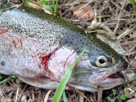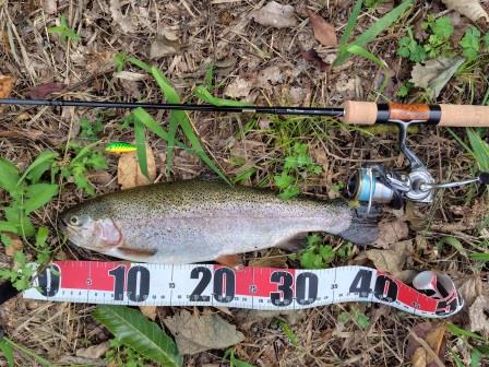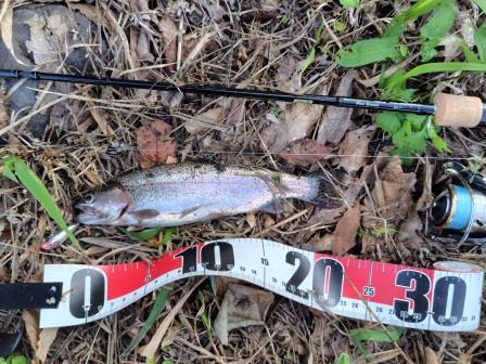 やっと釣れたのは小さなレインボー