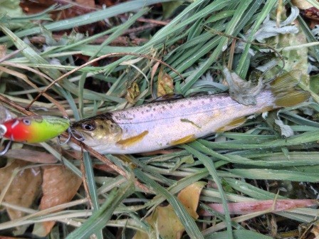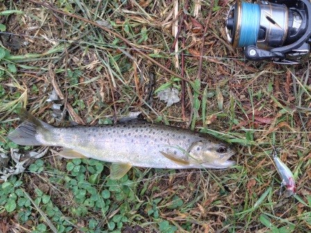 先行者がいたのか反応が頗る悪く、ルアーから逃げる魚影が見えた。