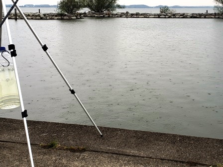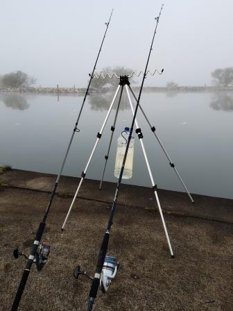 今までは水門を中心に狙っていたのでフェンスにロッドを置いていましたが、もっと広く探るために三脚ならぬ四脚を購入してみました!