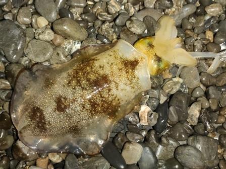 先ほどより少し引くアオリイカ
