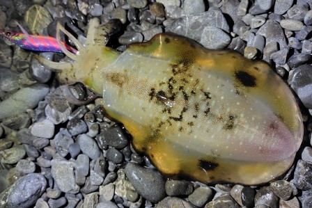 アワセを入れるとズシッと手応え。でも引きが弱いからコウイカかな?