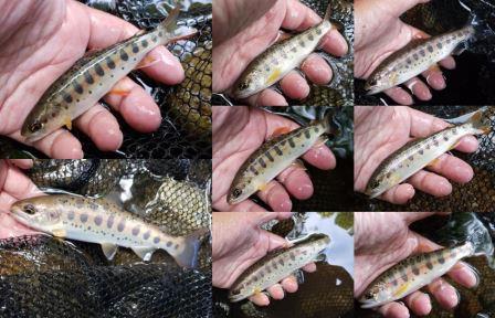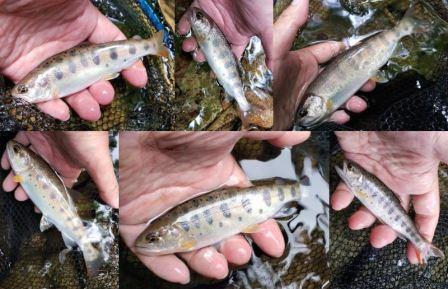 小さいのが多いけど、美しいヤマメはうれしいです。アマゴよりヤマメの方が好きですが、アマゴっぽいのも入ります。