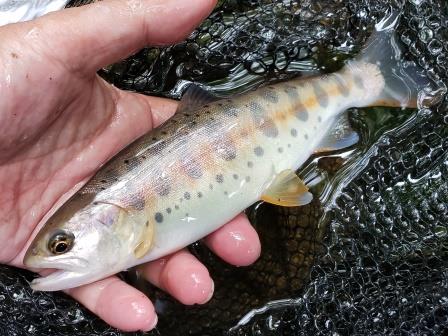 釣り人にかなり攻められたようで反応が悪いから、ネイティブブラウンを狙いに小場所へ移動