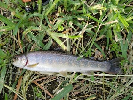 またスピナーに戻してヤマメを狙っていると大きめのが釣れる
