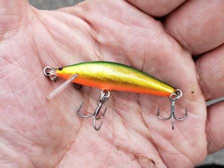 メジャークラフト ファインテール エデン S 50mm #05 レーザーピンクヤマメ EDN-50Sも使ってみますが、平均サイズが小さいのか反応が悪く、やっと食わせた!と思ったらイワナでした