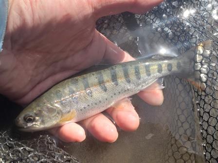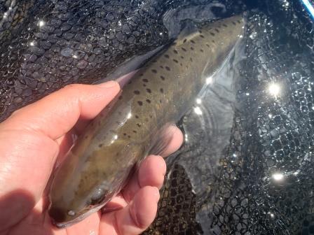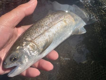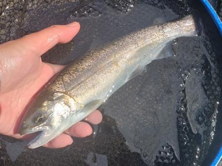 尻尾は一部欠損している成魚放流ですが良く引いてくれました