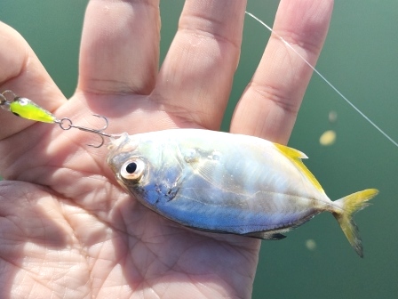 水温の低下で港奥にメッキいましたが極小でした。元々この場所はチビが多めですがこれは最小クラス。