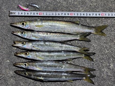 こんなイワシがいるなら、タチも青物も港内にわんさか入ってきそうですが、他のカマスはシラスみたいなのを食っていたわ。