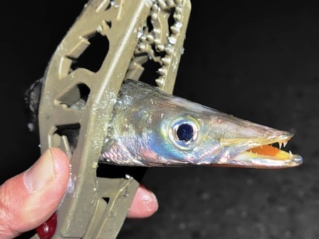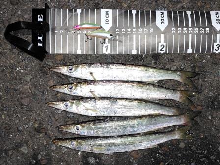 ちょっと細めのカマスが釣れた。一瞬で回りにカマス臭♪