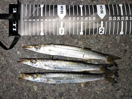 何度もそんな感じでやっとフッキングしたカマスはちょっと細め。