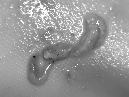 ニュルニュルしたものと、小さいエビが入っていました。