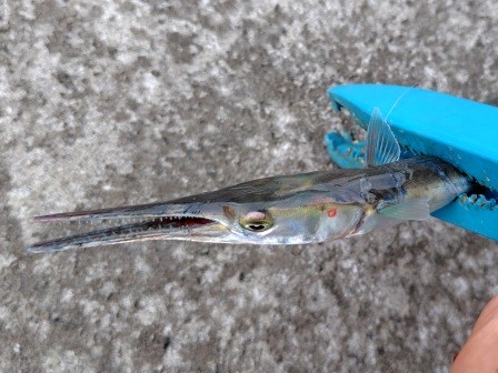 その後、追われているのを見たら細長い魚がジャンプしてるわ。