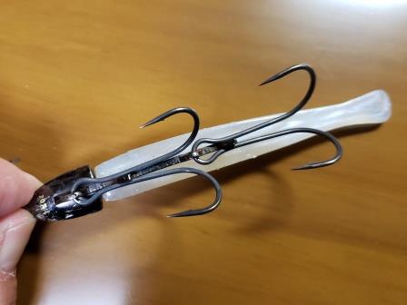 このライノヘッドは欠点として高価な割にフックが弱くて、ダブルフックのアイの部分が割れて落ちるのです。