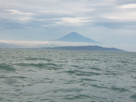 大雨が続いていましたが、久しぶりの晴れ間が出た月曜日、仕事が終わって先輩のボートに乗せていただき焼津沖へ。