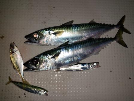 ポンポンとウルメイワシ、チビサバが引っ掛かってきて、港内で釣れるような豆アジが釣れます。