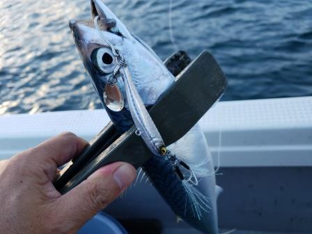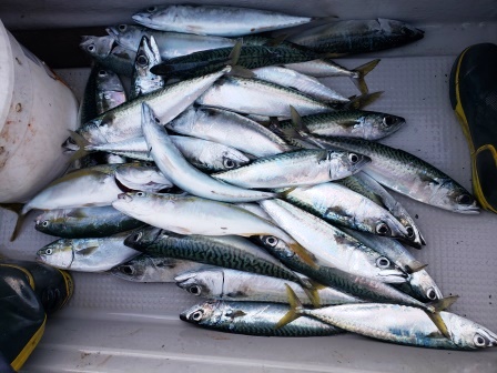 それでもナブラを狙っていくとサバがポツポツ釣れます。