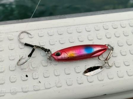 ルアーは青嵐ルアーのジグに最近のマイブームブレードを付けてやってみます。