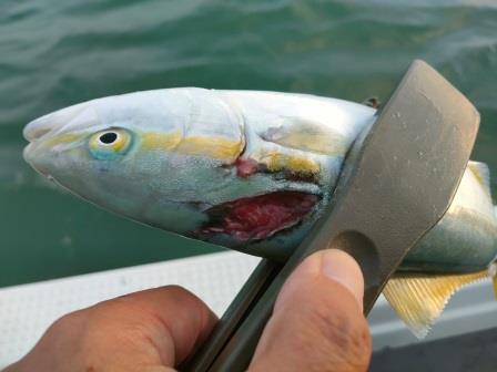 カンパチもワカナゴも傷がある魚体が目立つ。