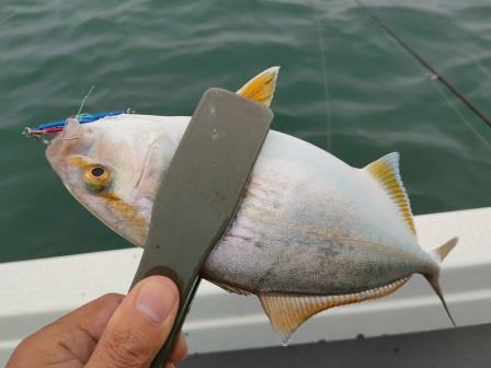 カンパチが釣れたけれど、その後はワカナゴの大群が攻めてきて入れ食い( ̄▽ ̄;)