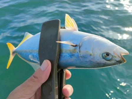 かなり釣りましたが、魚種の比率はカンパチ7:サバ2:ワカナゴ1って感じ。