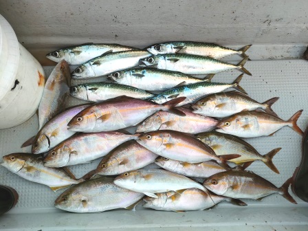カンパチが多いが、今日は引きがブルブルするサバがポツポツ釣れます。