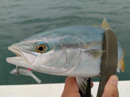 ドラグを何度も出されやっと揚がってきたのはイナダ