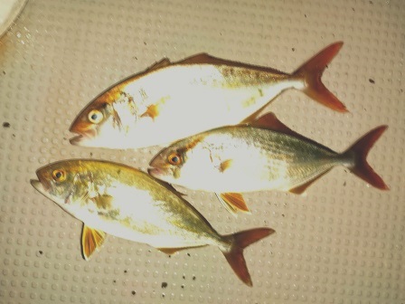 小さいのかと思ったらやはりそうで、20センチくらいのカンパチが釣れる。