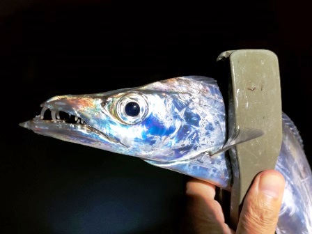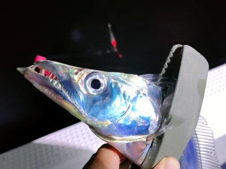 なかなか強い引きで揚がってきたのは良いサイズのタチウオ